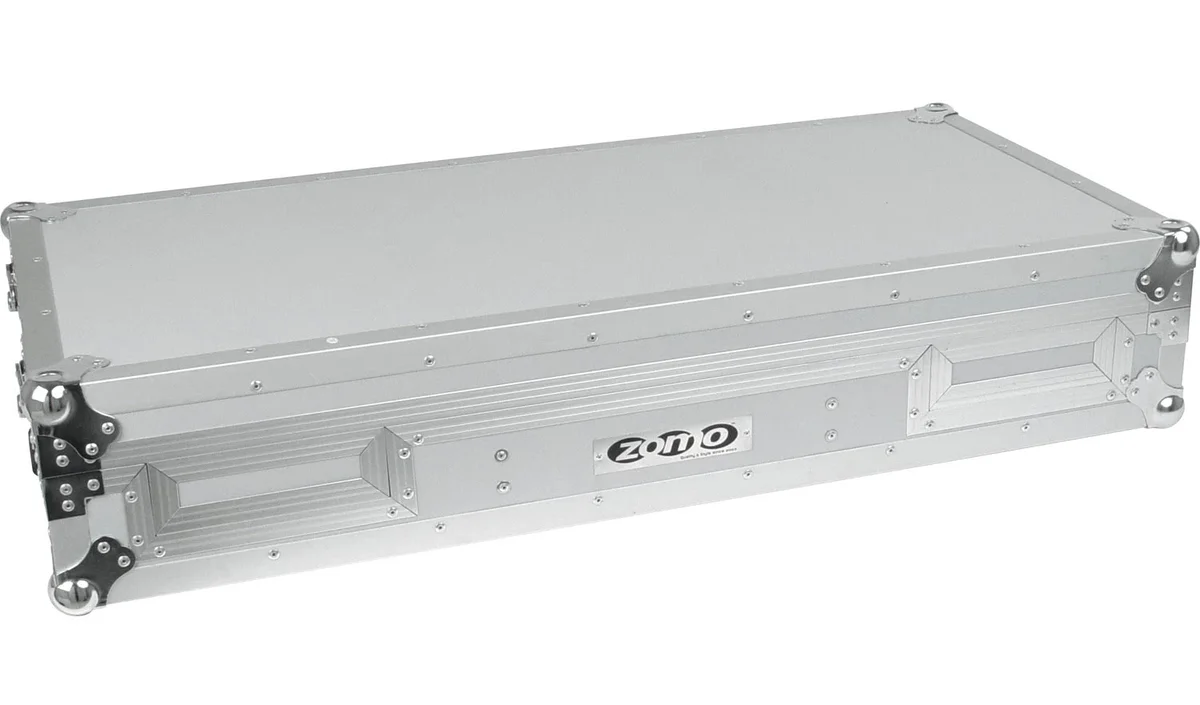 Flightcase profesional Zomo pentru Denon DN-3500 și mixer de 12", cu construcție robustă din aluminiu argintiu, protecție din spumă și feronerie metalică ranforsată.