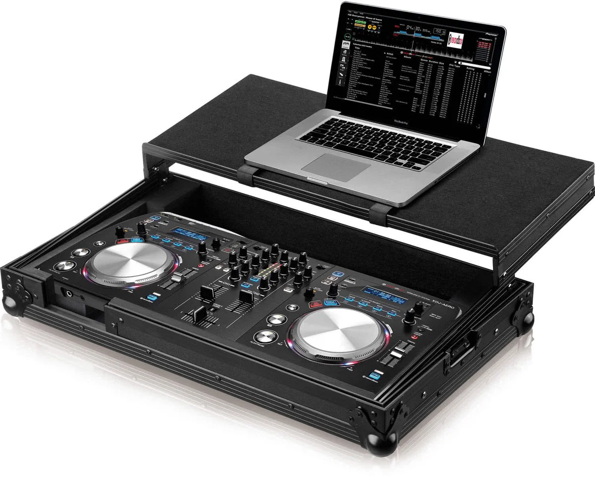 Flightcase profesional Zomo în ediția Night Style (negru complet) pentru Pioneer XDJ-Aero, cu raft retractabil pentru laptop pe șine glisante și construcție robustă din placaj de 9 mm.