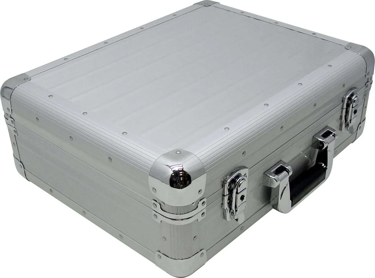 Flightcase profesional Zomo CD-MK3 XT în finisaj argintiu, cu construcție robustă din aluminiu și protecție interioară din spumă – ideal pentru transportul în siguranță al colecției de CD-uri.