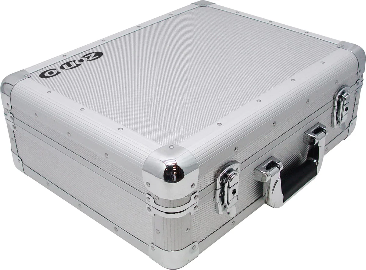Flightcase profesional Zomo CD-Case MK2 argintiu pentru transportul și depozitarea în siguranță a CD-urilor de DJ, cu construcție robustă, colțuri ranforsate și sistem de închidere cu blocare.